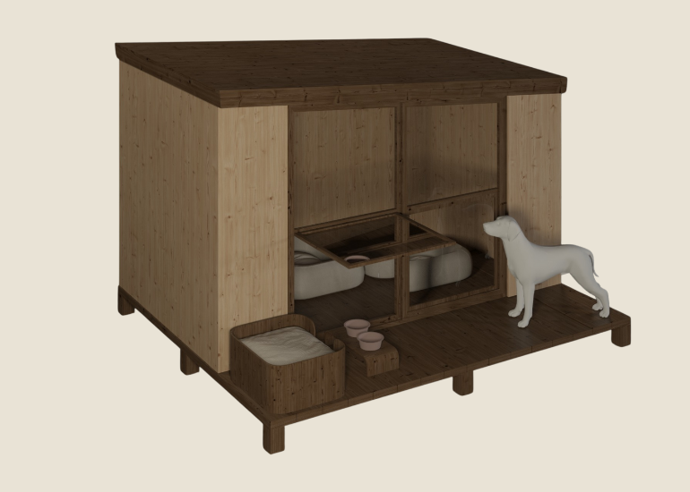 • Shaded day lounge & night shelter for dogs & cats with breezy airflow.